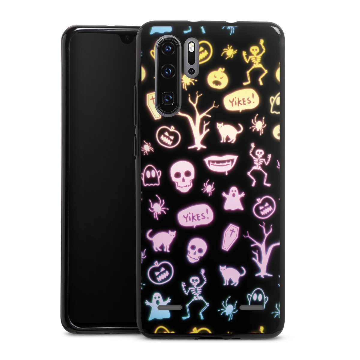 Neon Halloween Stickers Black Background