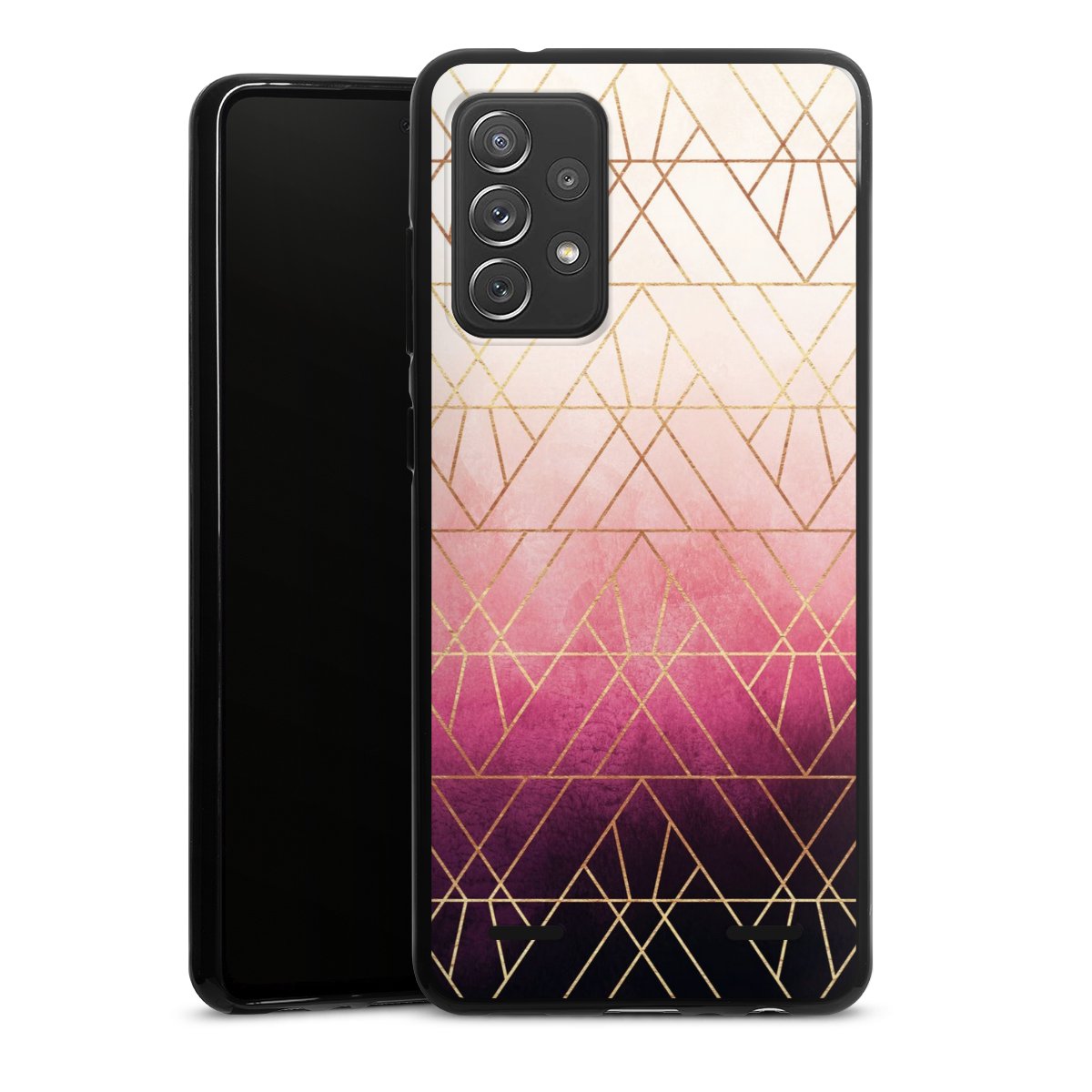 Pink Ombre Triangles Gold Print