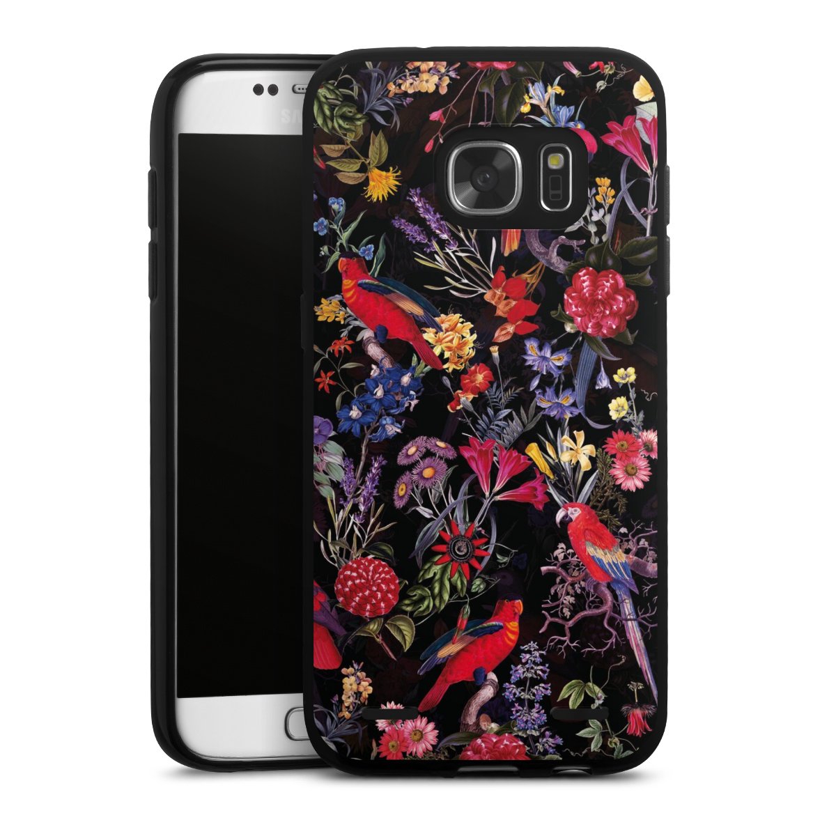 Dark Flowers and Parrots