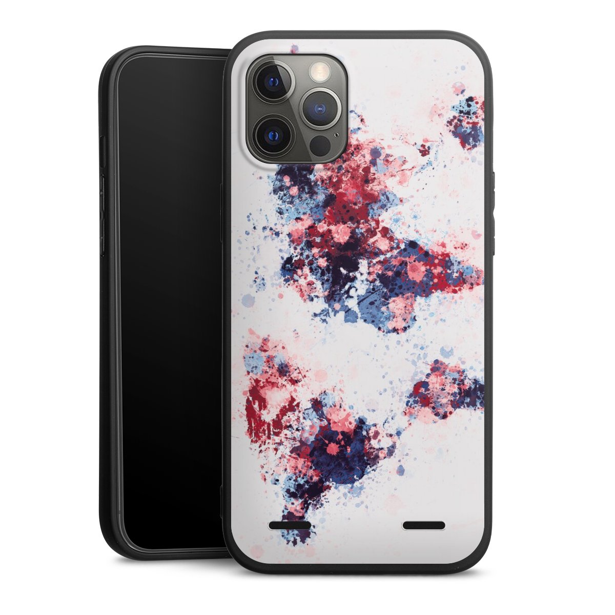 World Map Paint Splashes Blue Red