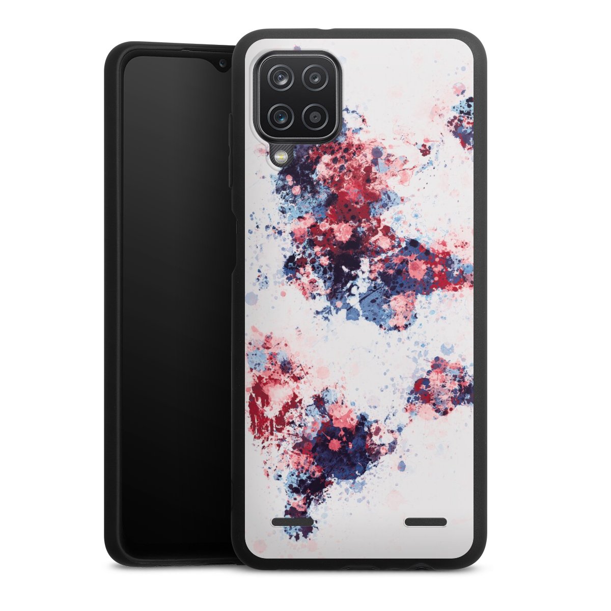 World Map Paint Splashes Blue Red