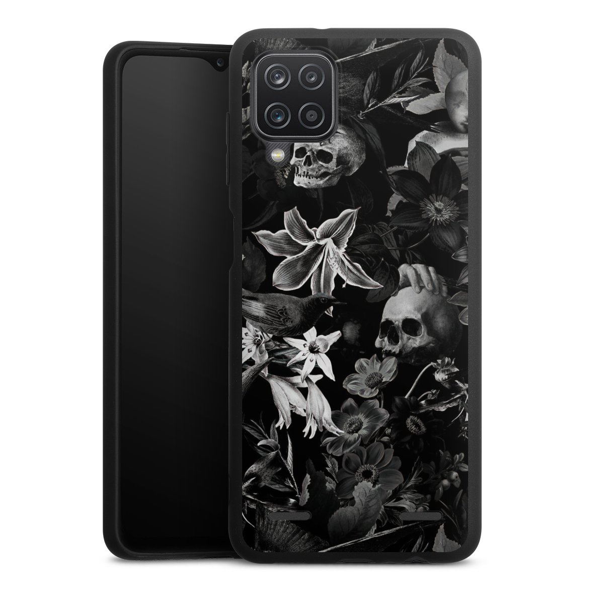 Skulls and Flowers on Black Background