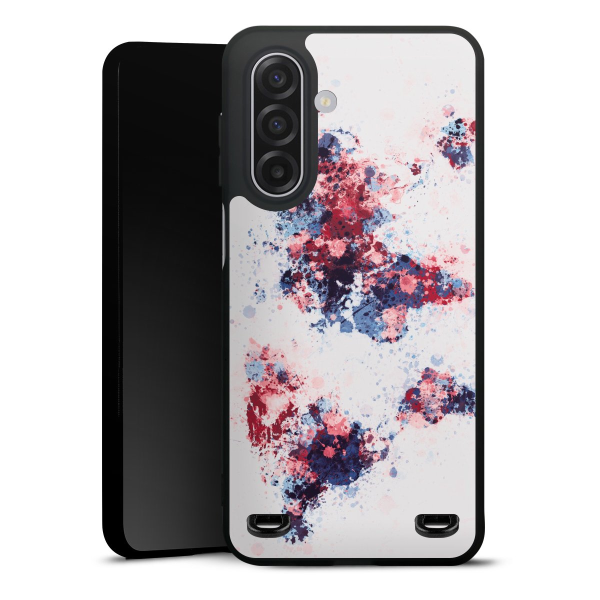World Map Paint Splashes Blue Red