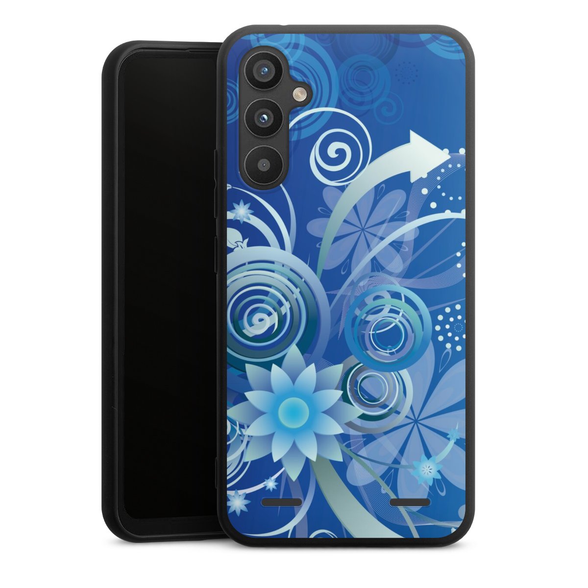 Flowers and Swirls Blue