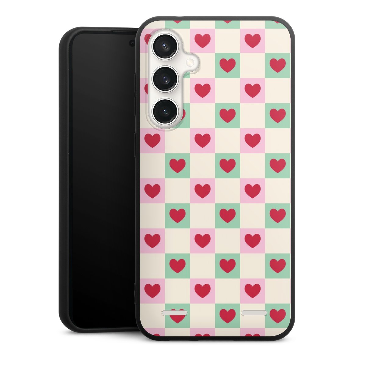Valentine Checked Hearts Pattern Pink Green