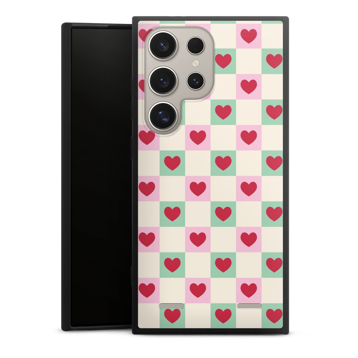 Valentine Checked Hearts Pattern Pink Green