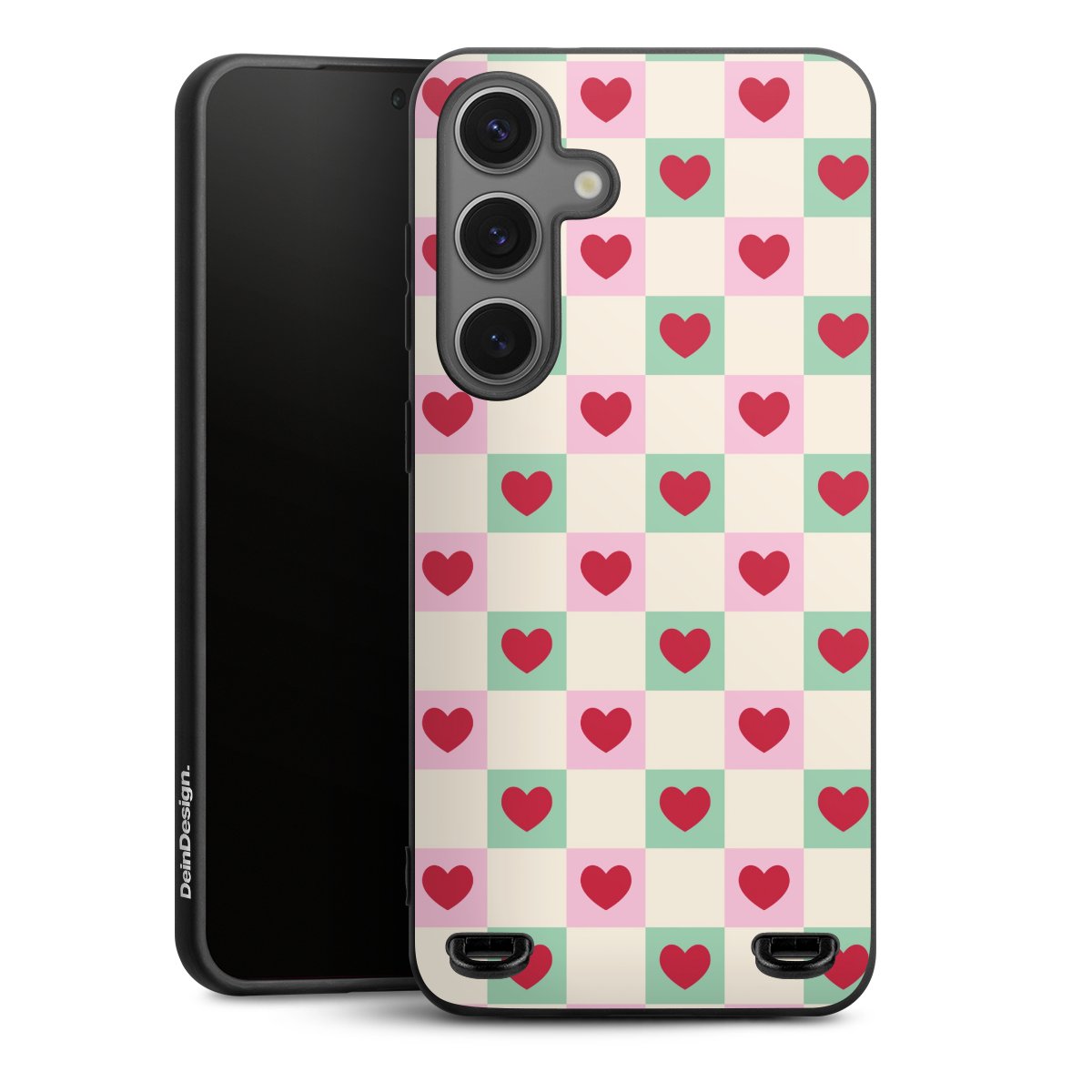 Valentine Checked Hearts Pattern Pink Green