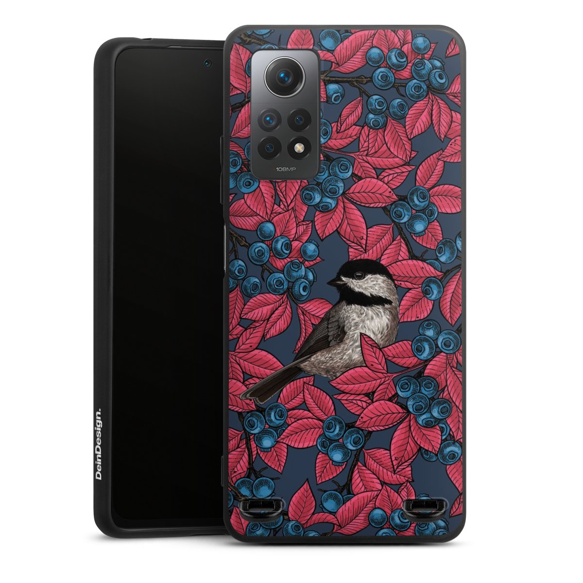 Blueberries And Birds On Navy