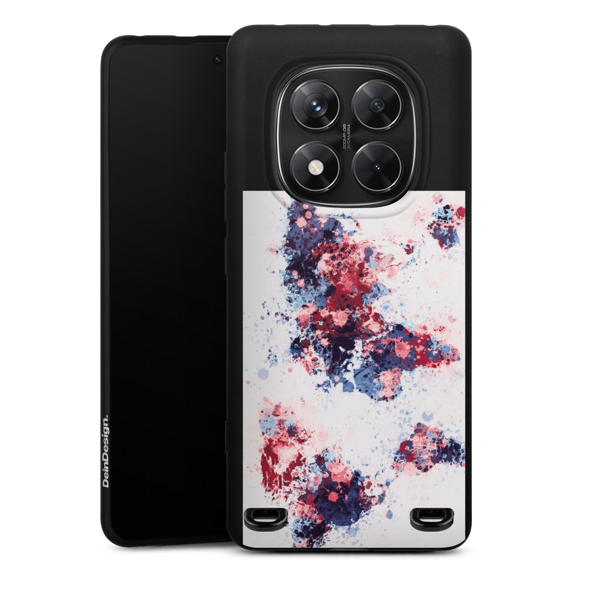 World Map Paint Splashes Blue Red