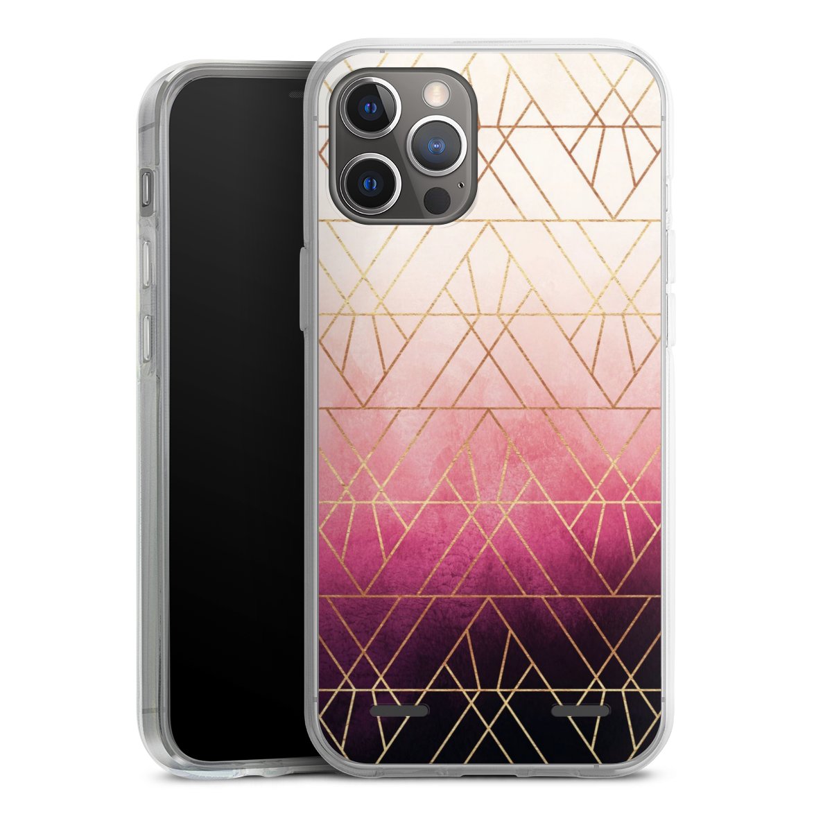 Pink Ombre Triangles Gold Print