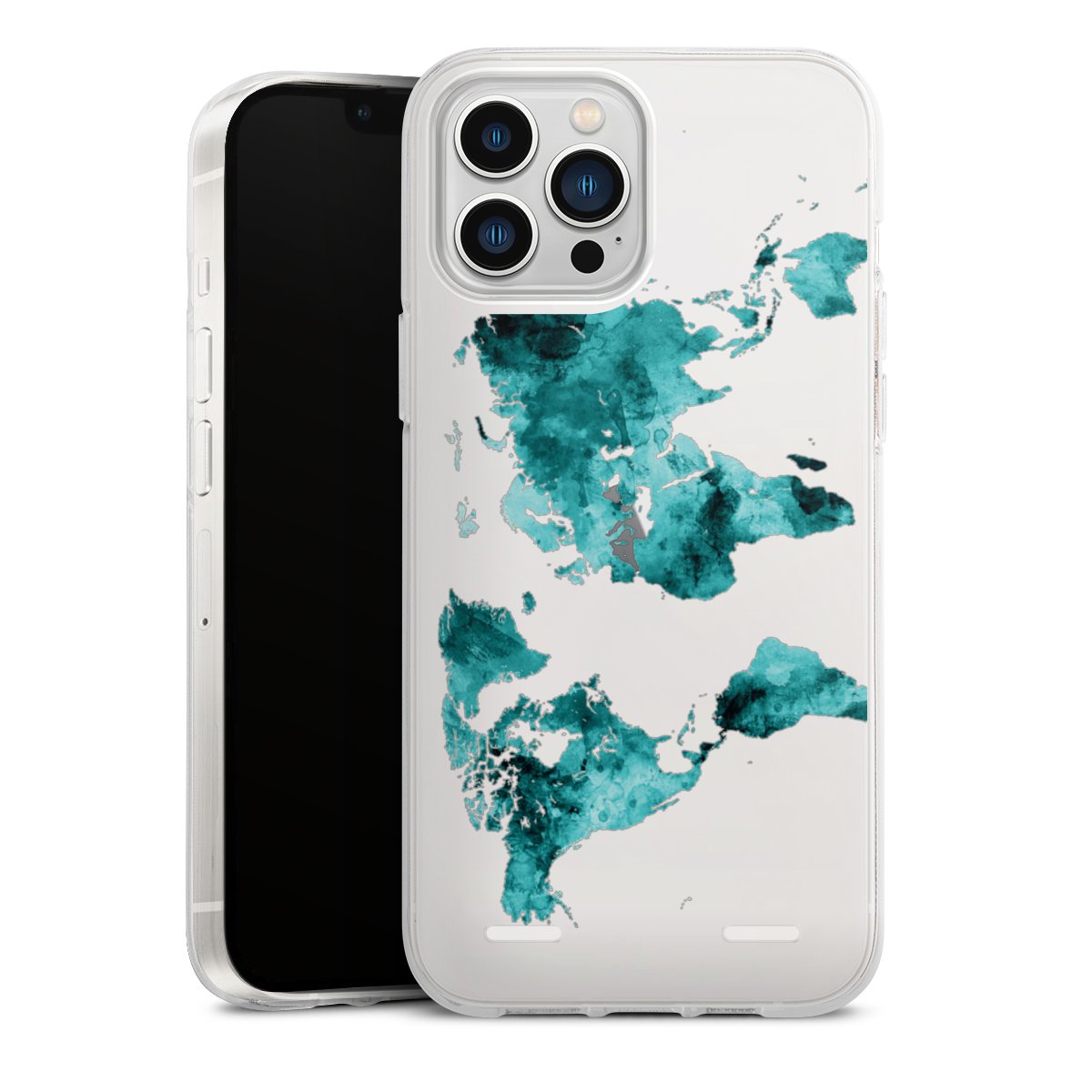World Map Teal Transparent