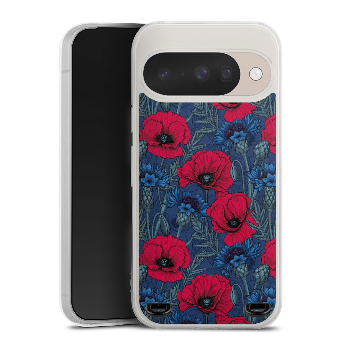 Poppies and Cornflowers on Blue