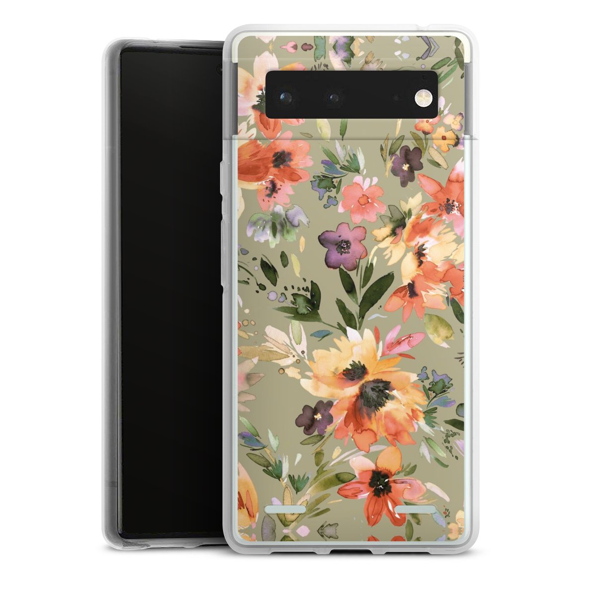 Painterly Tropical Flowers Sage Green