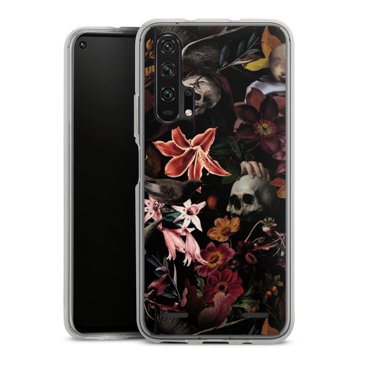 Skulls and Flowers on Dark Background