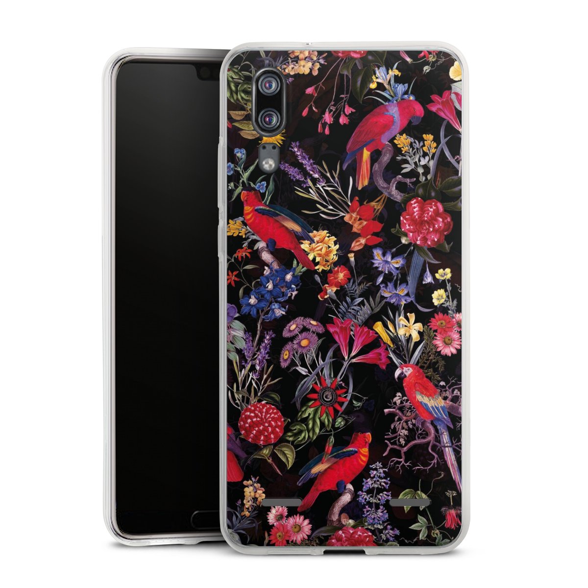 Dark Flowers and Parrots