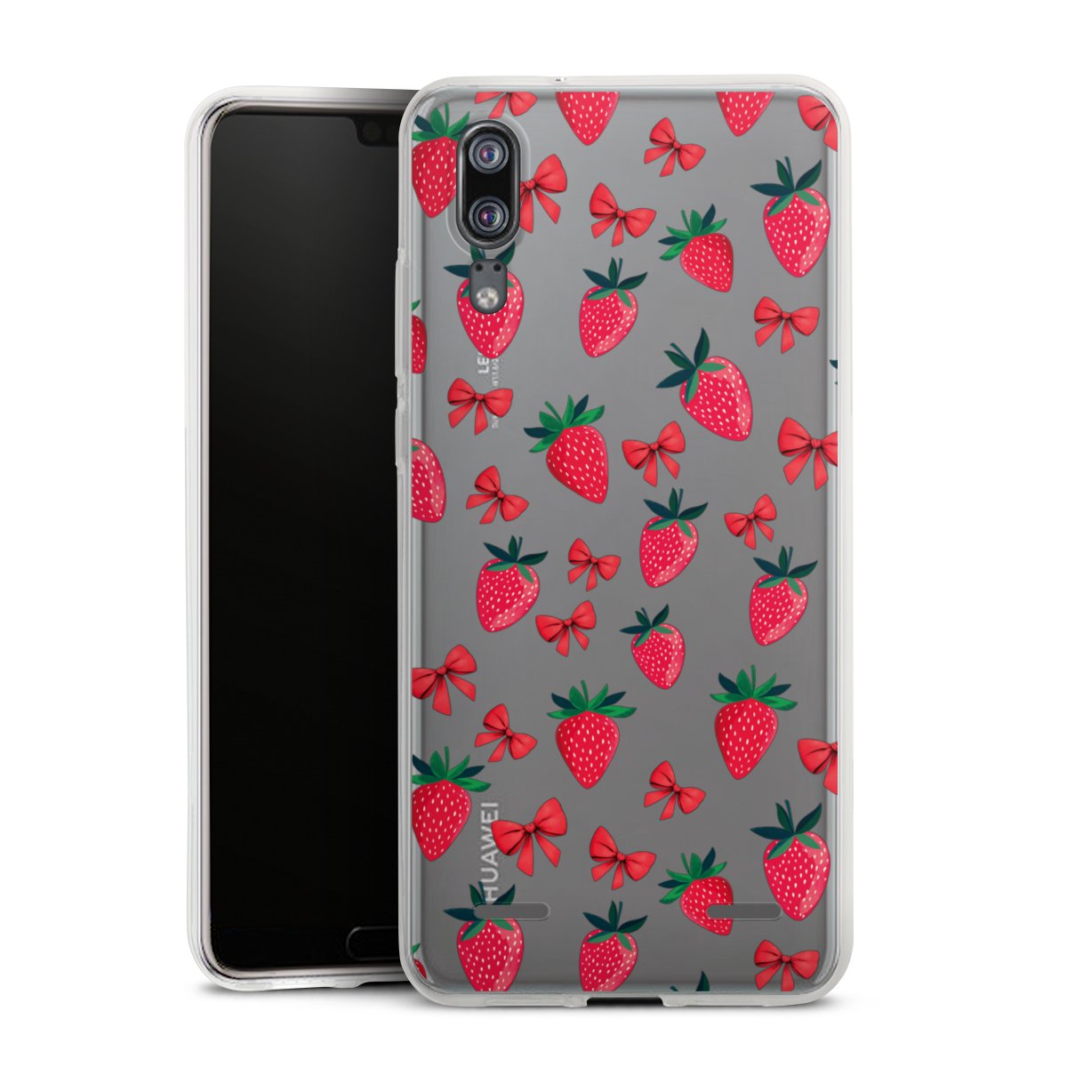 Strawberry Heart Ribbon Pattern Transparent