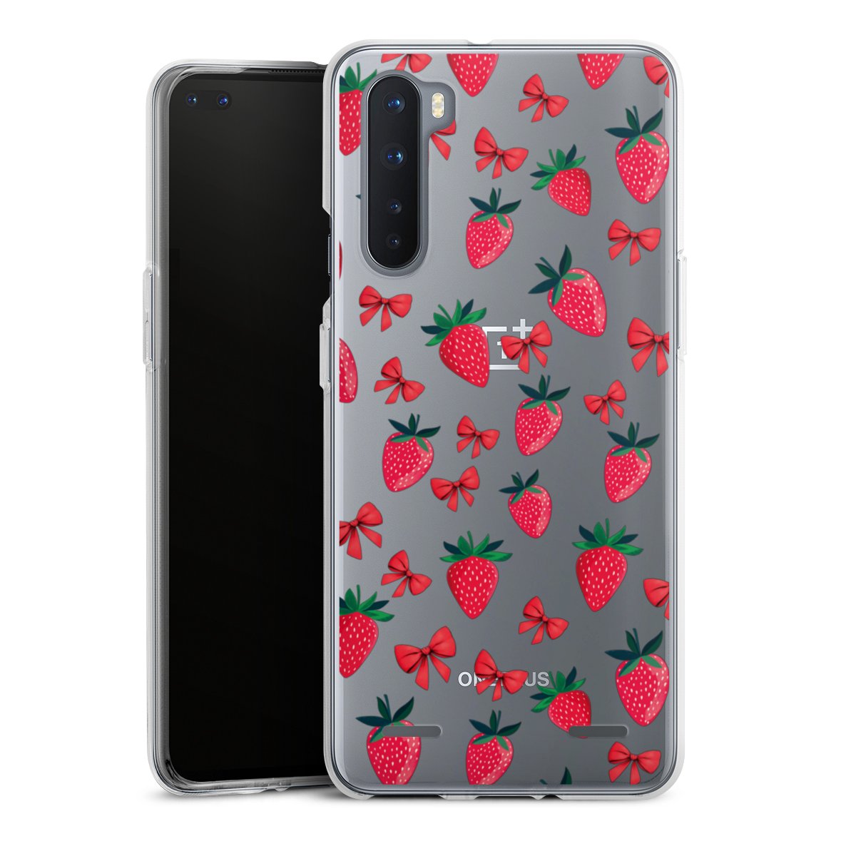 Strawberry Heart Ribbon Pattern Transparent