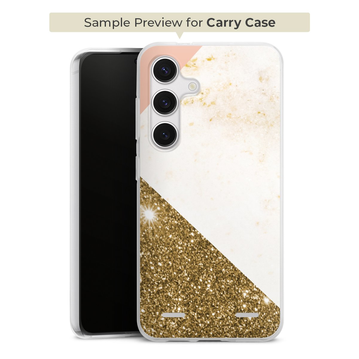 For our Carry Case Single we are using our advanced direct printing technology. The backside is fully printabale, the frame is left unprinted. You can order the phone case without print, printed completely or also with a partial print. Choose one of our exclusive, pre-made shop designs or let your creativity shine and create your very own unique design with your pictures, overlays and text.