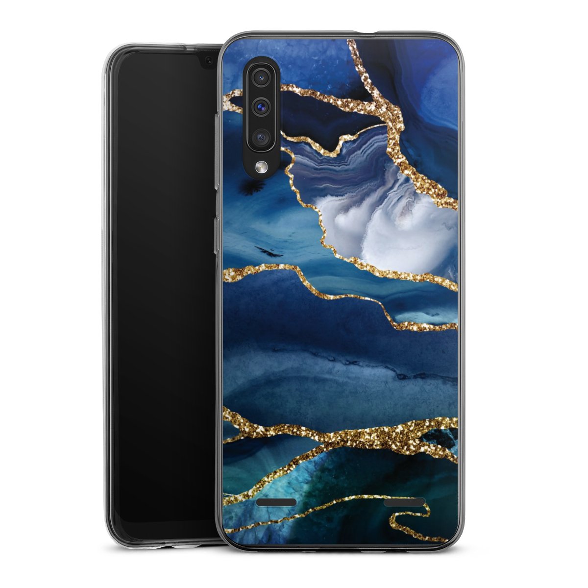 Blue Marble Gold Glitter Look
