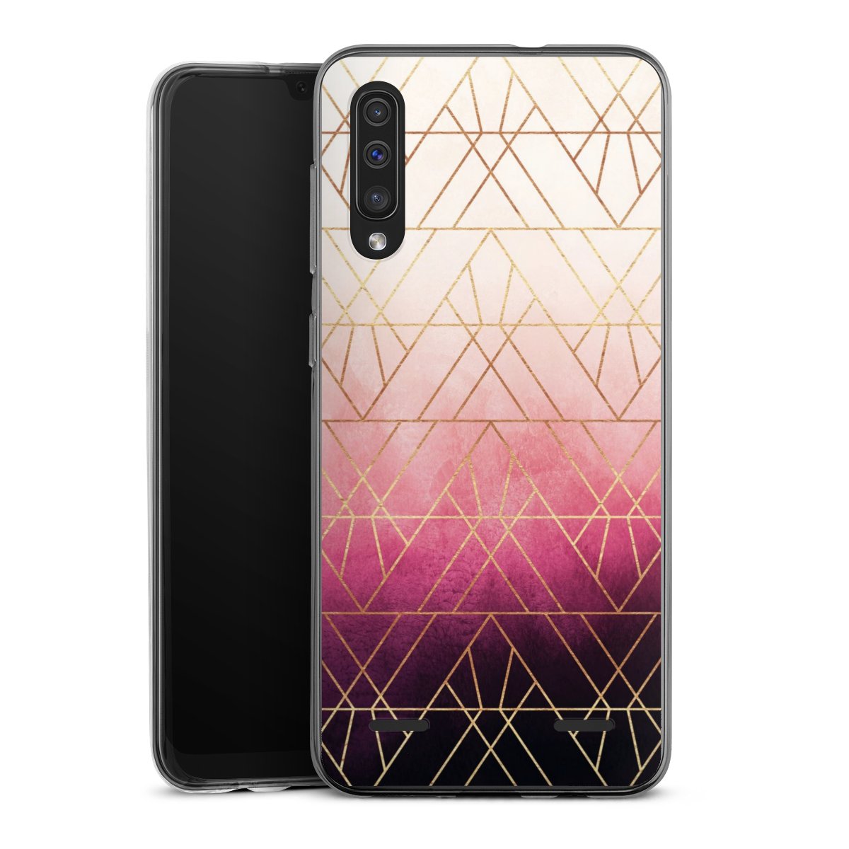 Pink Ombre Triangles Gold Print