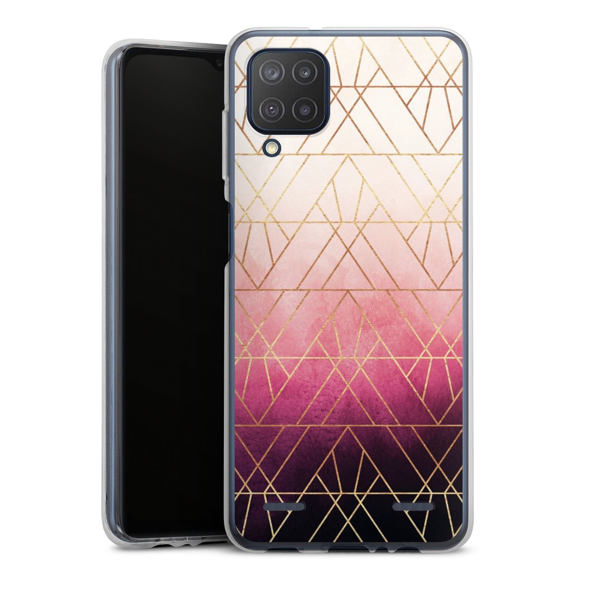 Pink Ombre Triangles Gold Print