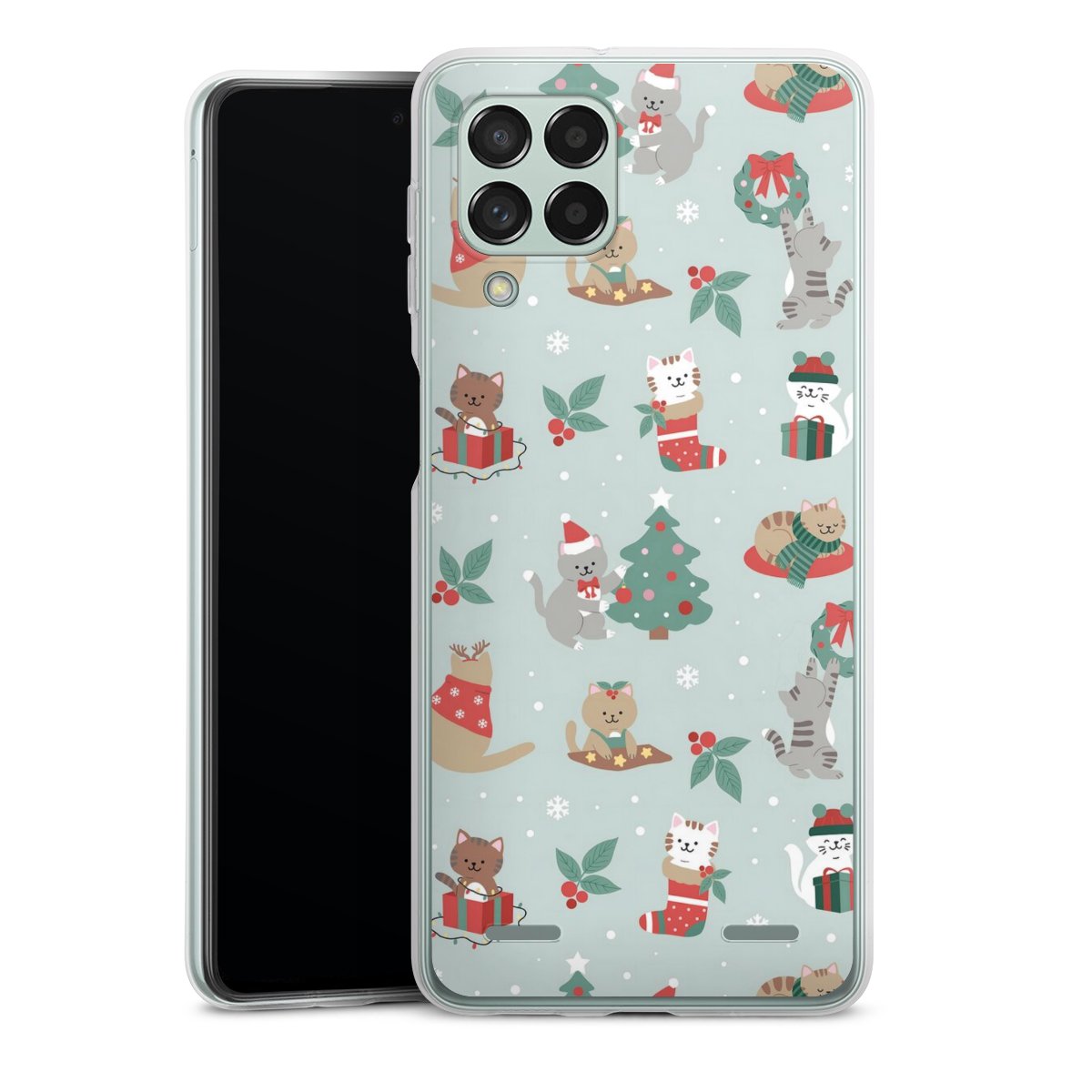 Cute Winter Wonderland Christmas Festive Cats on Teal