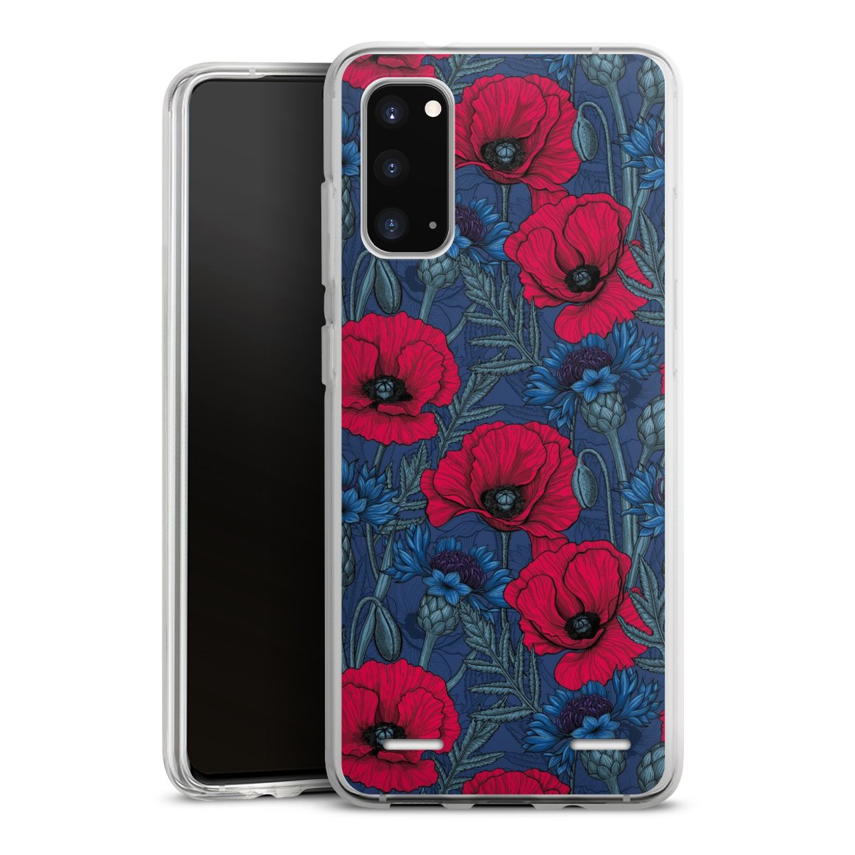 Poppies and Cornflowers on Blue