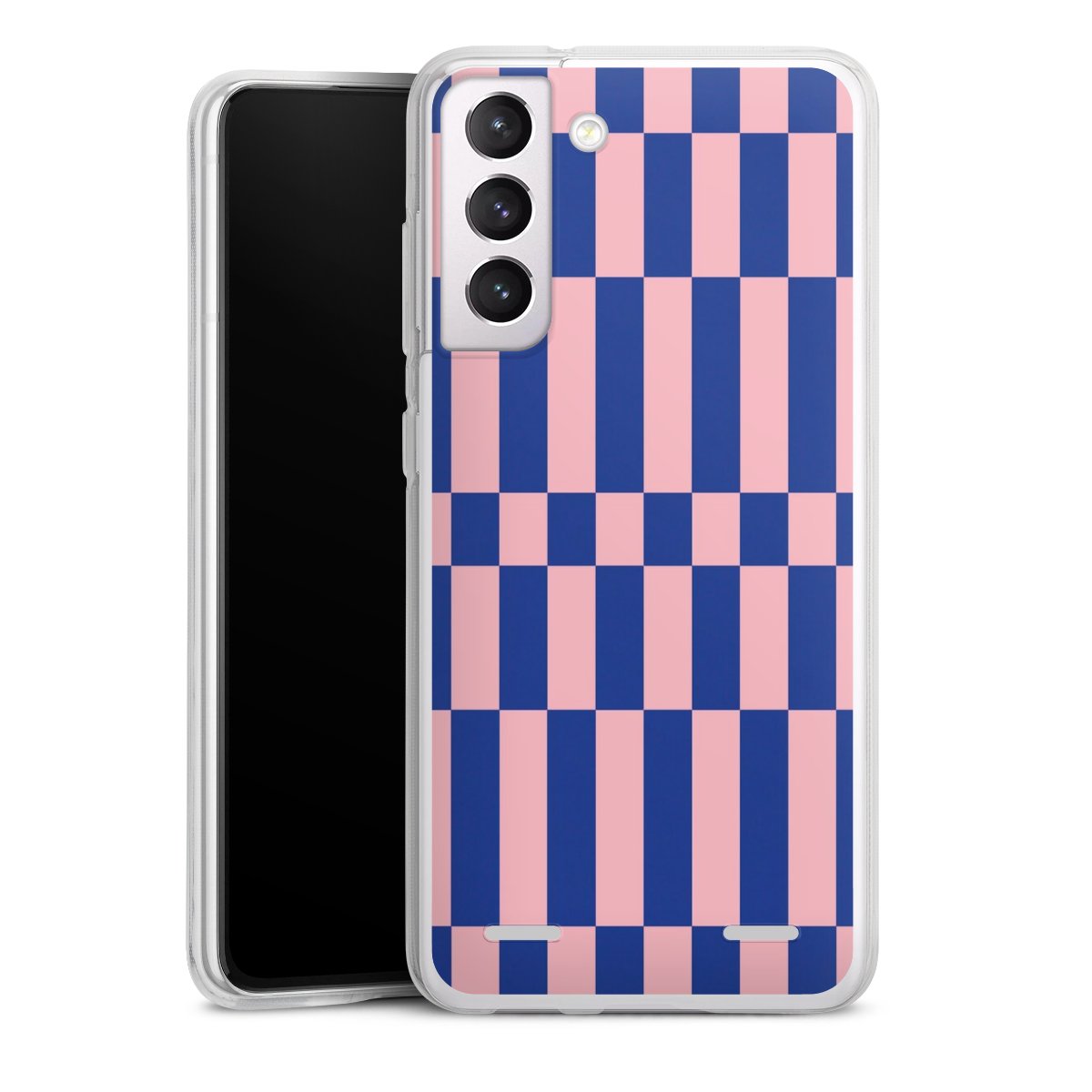 Checked Abstract Bold Electric Blue and Pink Color Block