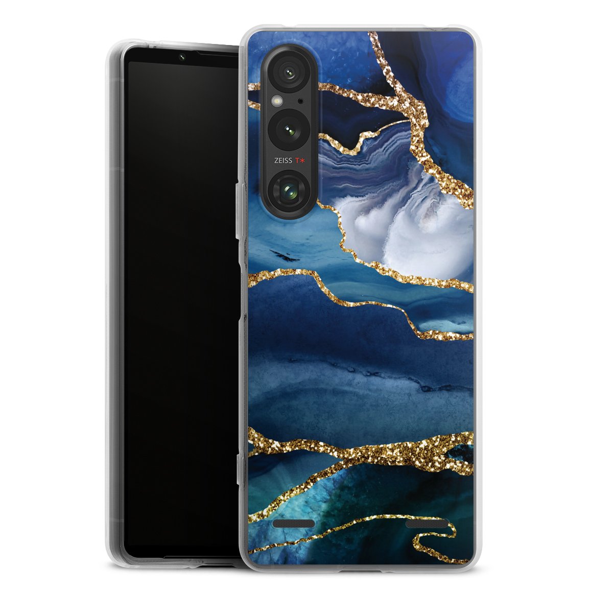 Blue Marble Gold Glitter Look