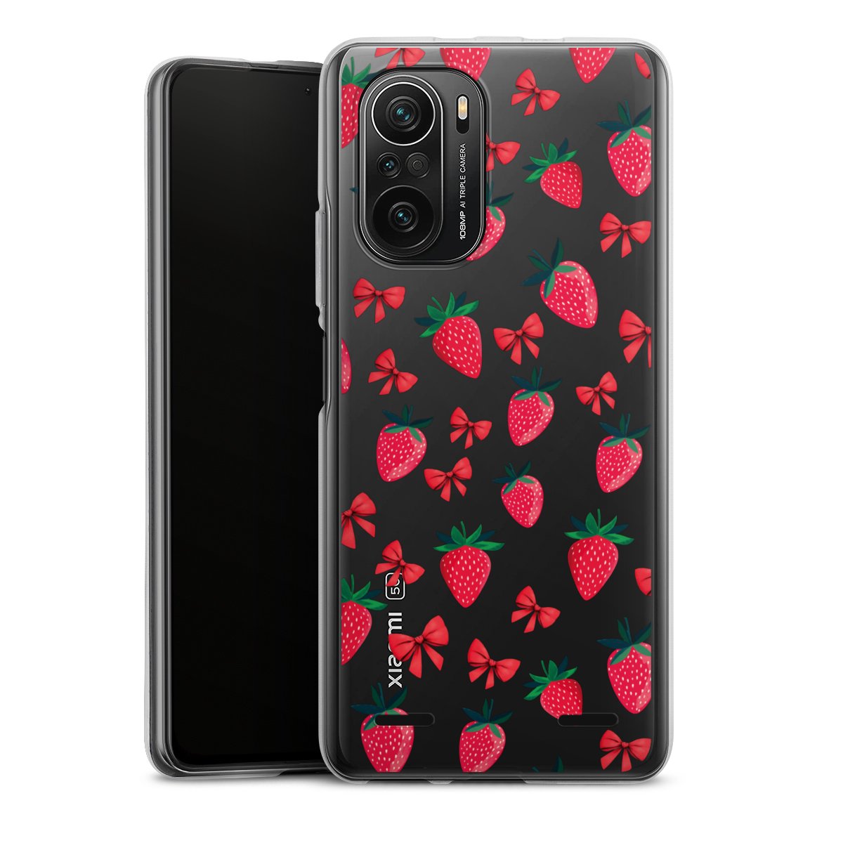 Strawberry Heart Ribbon Pattern Transparent