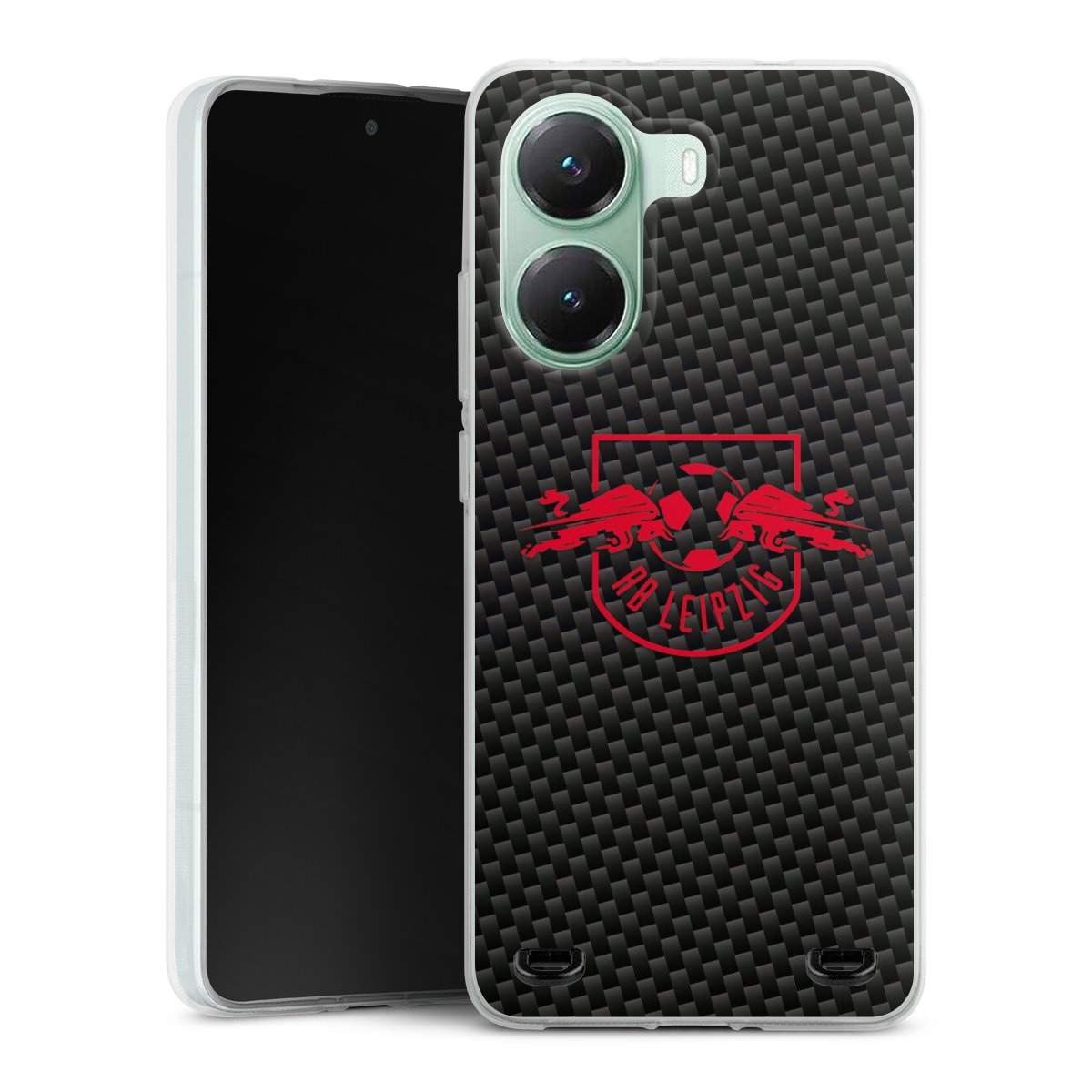 Red RB Leipzig logo on carbon look