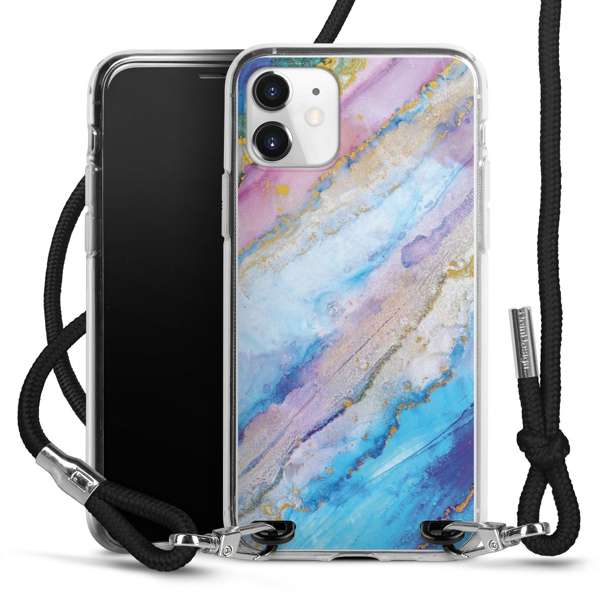 Keep your phone handy at all times, thanks to the flexible silicone case with a textile strap.