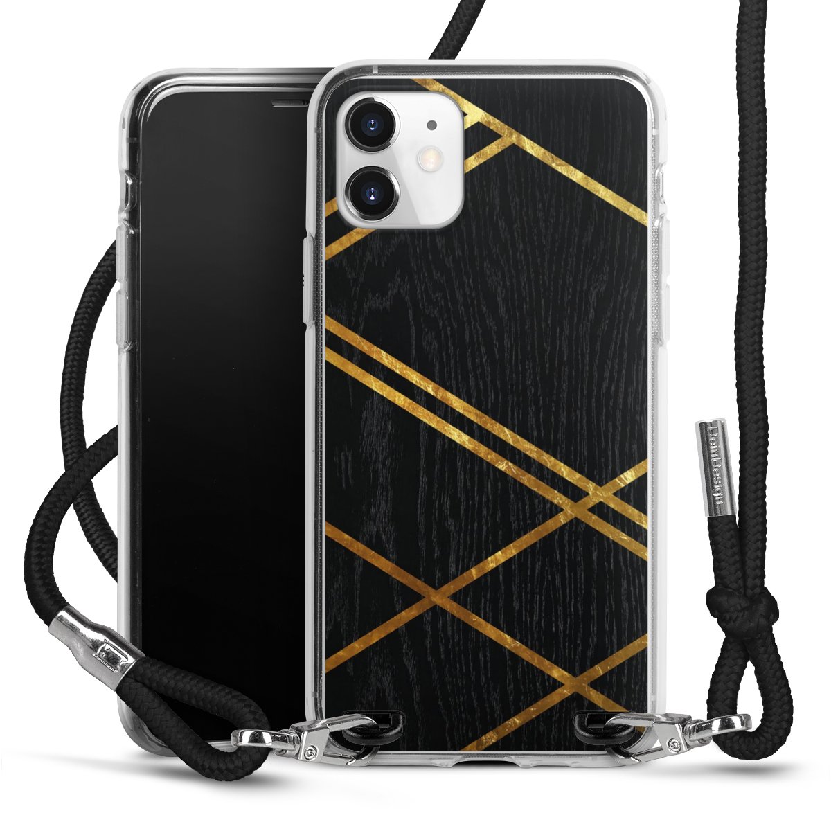 Black Geometric Pattern Golden Stripes