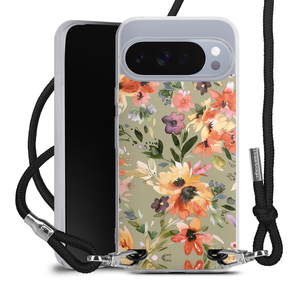 Keep your phone handy at all times, thanks to the flexible silicone case with a textile strap.