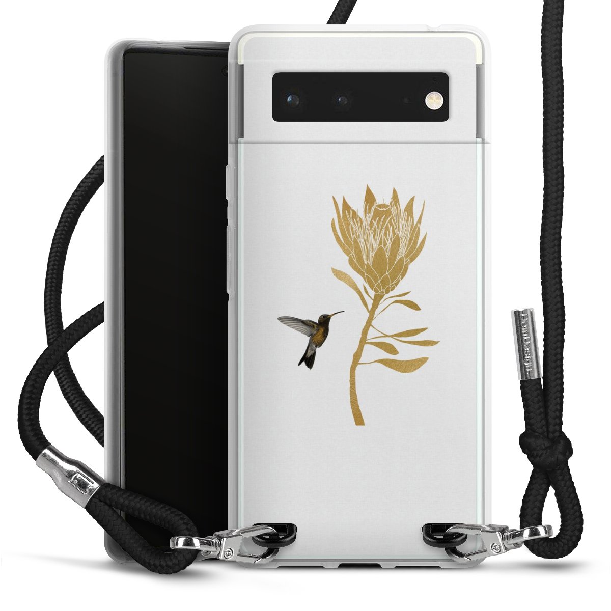 Keep your phone handy at all times, thanks to the flexible silicone case with a textile strap.