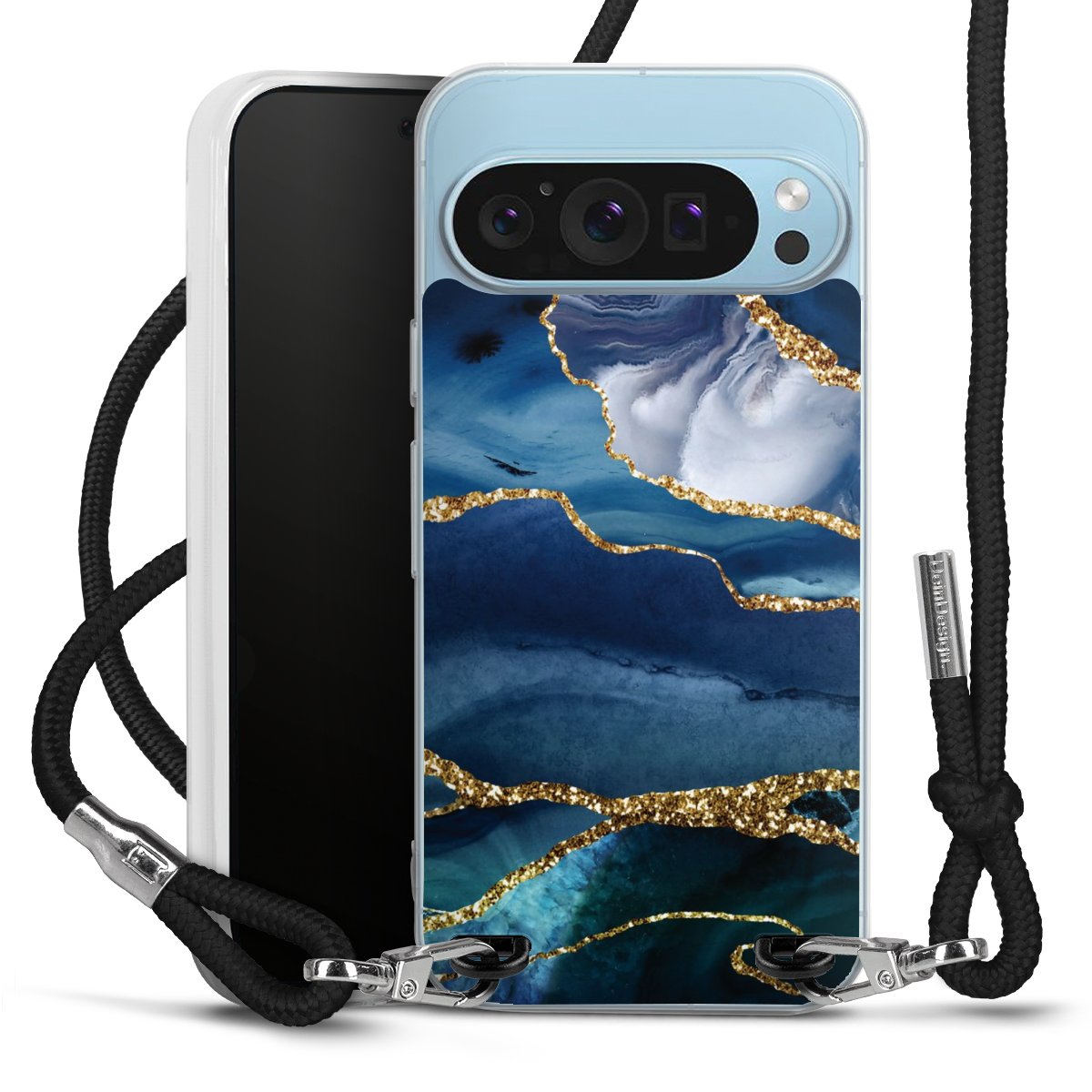 Blue Marble Gold Glitter Look
