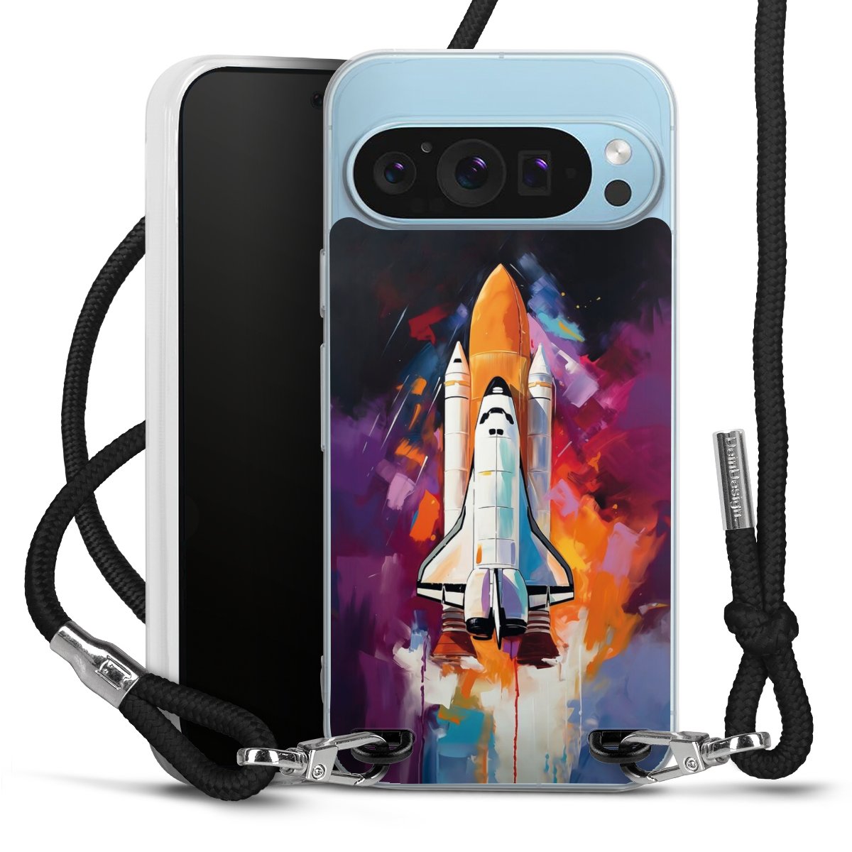 Keep your phone handy at all times, thanks to the flexible silicone case with a textile strap.