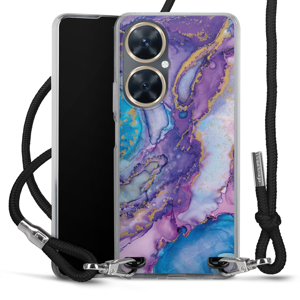 The flexible case is made from a high quality TPU material (thermoplastic Polyurethan). Thanks to its long-lasting and break resistant characteristics, the case is flexible yet consistent in form and has a great grip and feel. The textile strap made from Polyester gives a chic yet casual accent allowing you to carry your phone like a bag or necklace - a practical gadget perfect for your next adventure. The textile strap is about 1.70 meters long and the length can easily be adjusted through the knots. Our Carry Case is available in black, red, pink, grey, mustard, dark green and royal blue. We added a metal fastening to give the product an elegant touch. The ends of the textile strap are covered with metallic end caps to protect them against fraying.