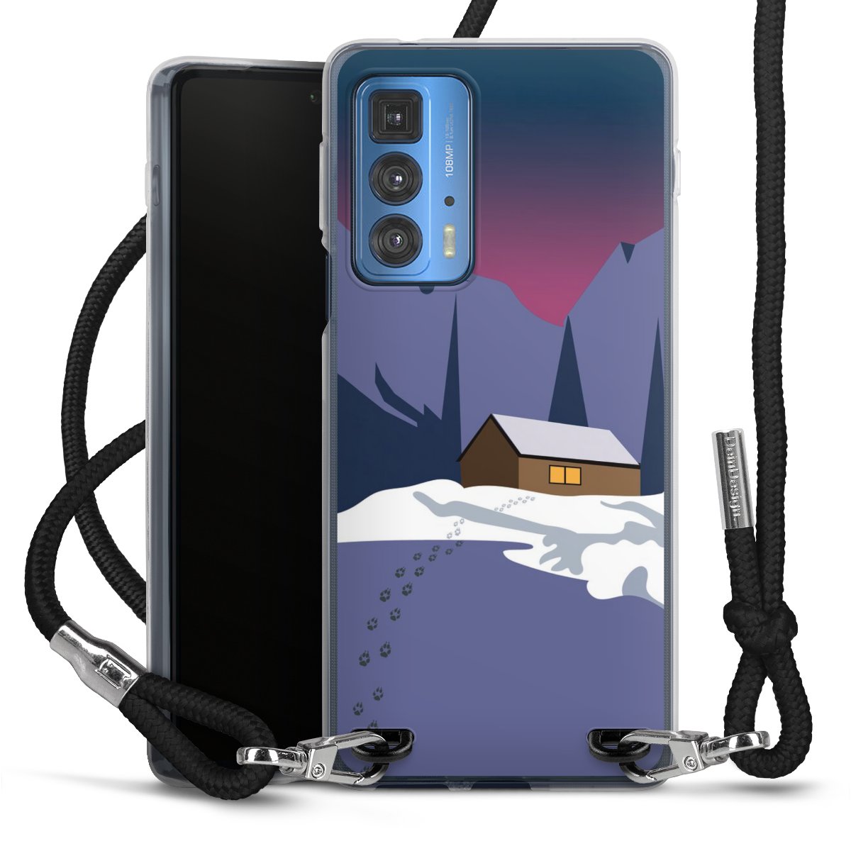 Keep your phone handy at all times, thanks to the flexible silicone case with a textile strap.