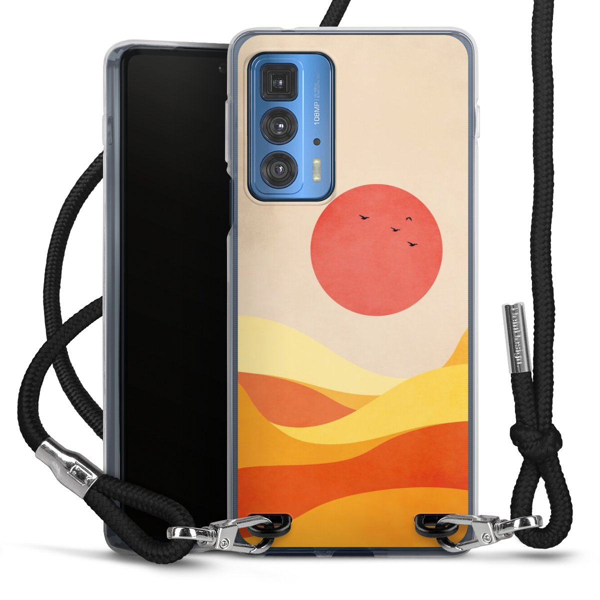 Keep your phone handy at all times, thanks to the flexible silicone case with a textile strap.