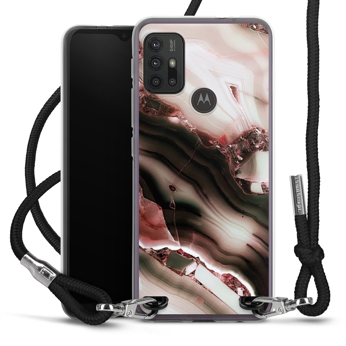 The flexible case is made from a high quality TPU material (thermoplastic Polyurethan). Thanks to its long-lasting and break resistant characteristics, the case is flexible yet consistent in form and has a great grip and feel. The textile strap made from Polyester gives a chic yet casual accent allowing you to carry your phone like a bag or necklace - a practical gadget perfect for your next adventure. The textile strap is about 1.70 meters long and the length can easily be adjusted through the knots. Our Carry Case is available in black, red, pink, grey, mustard, dark green and royal blue. We added a metal fastening to give the product an elegant touch. The ends of the textile strap are covered with metallic end caps to protect them against fraying.