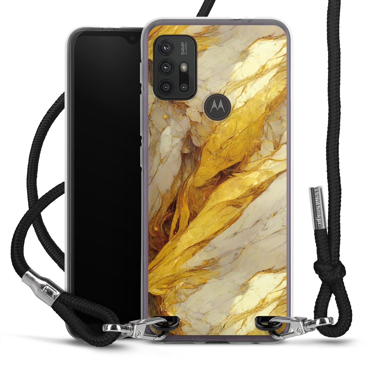The flexible case is made from a high quality TPU material (thermoplastic Polyurethan). Thanks to its long-lasting and break resistant characteristics, the case is flexible yet consistent in form and has a great grip and feel. The textile strap made from Polyester gives a chic yet casual accent allowing you to carry your phone like a bag or necklace - a practical gadget perfect for your next adventure. The textile strap is about 1.70 meters long and the length can easily be adjusted through the knots. Our Carry Case is available in black, red, pink, grey, mustard, dark green and royal blue. We added a metal fastening to give the product an elegant touch. The ends of the textile strap are covered with metallic end caps to protect them against fraying.
