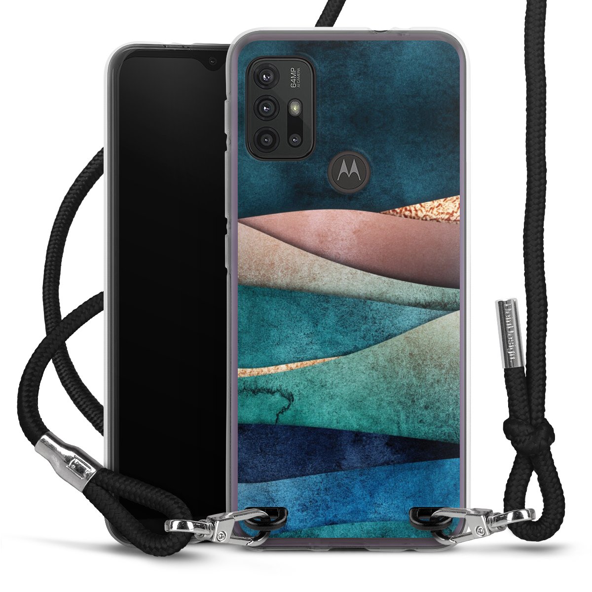 The flexible case is made from a high quality TPU material (thermoplastic Polyurethan). Thanks to its long-lasting and break resistant characteristics, the case is flexible yet consistent in form and has a great grip and feel. The textile strap made from Polyester gives a chic yet casual accent allowing you to carry your phone like a bag or necklace - a practical gadget perfect for your next adventure. The textile strap is about 1.70 meters long and the length can easily be adjusted through the knots. Our Carry Case is available in black, red, pink, grey, mustard, dark green and royal blue. We added a metal fastening to give the product an elegant touch. The ends of the textile strap are covered with metallic end caps to protect them against fraying.