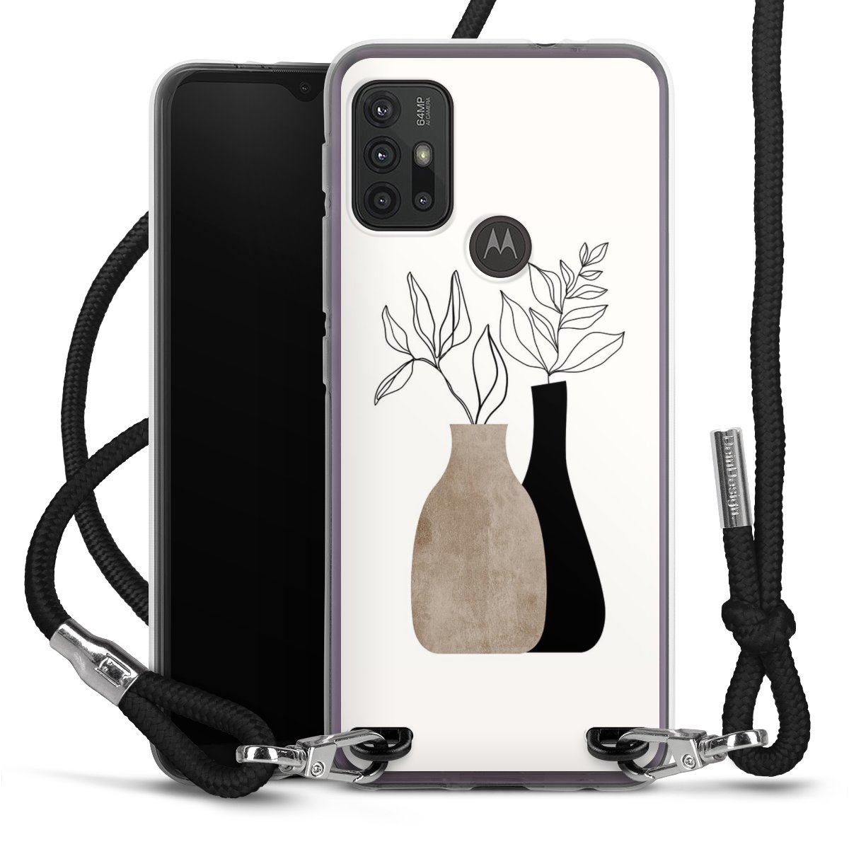 For our Carry Case we are using our advanced direct printing technology. The backside is fully printable, the frame is left unprinted. You can order the phone case without print, printed completely or also with a partial print. Choose one of our exclusive, pre-made shop designs or let your creativity shine and create your very own unique design with your pictures, overlays and text.