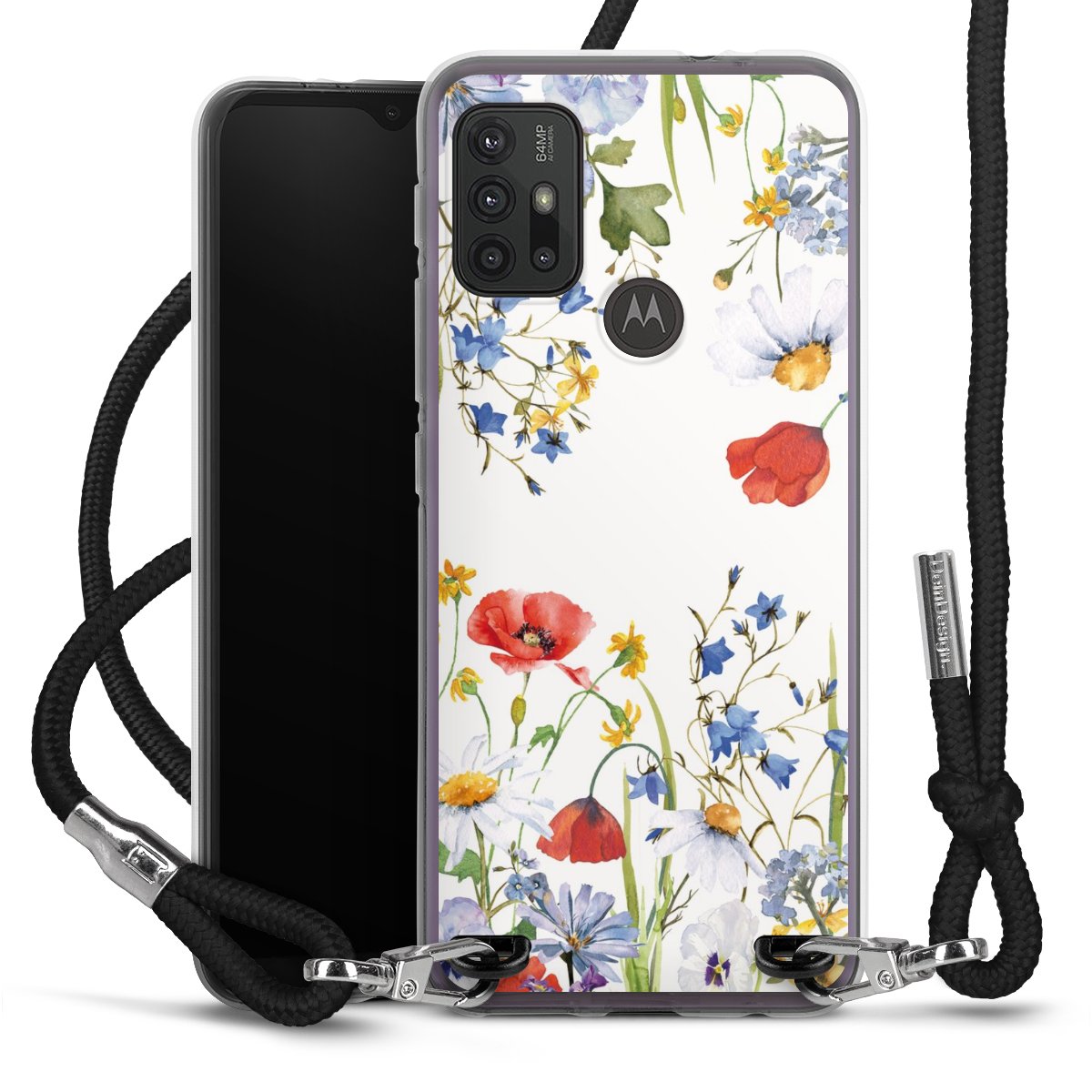 Keep your phone handy at all times, thanks to the flexible silicone case with a textile strap.