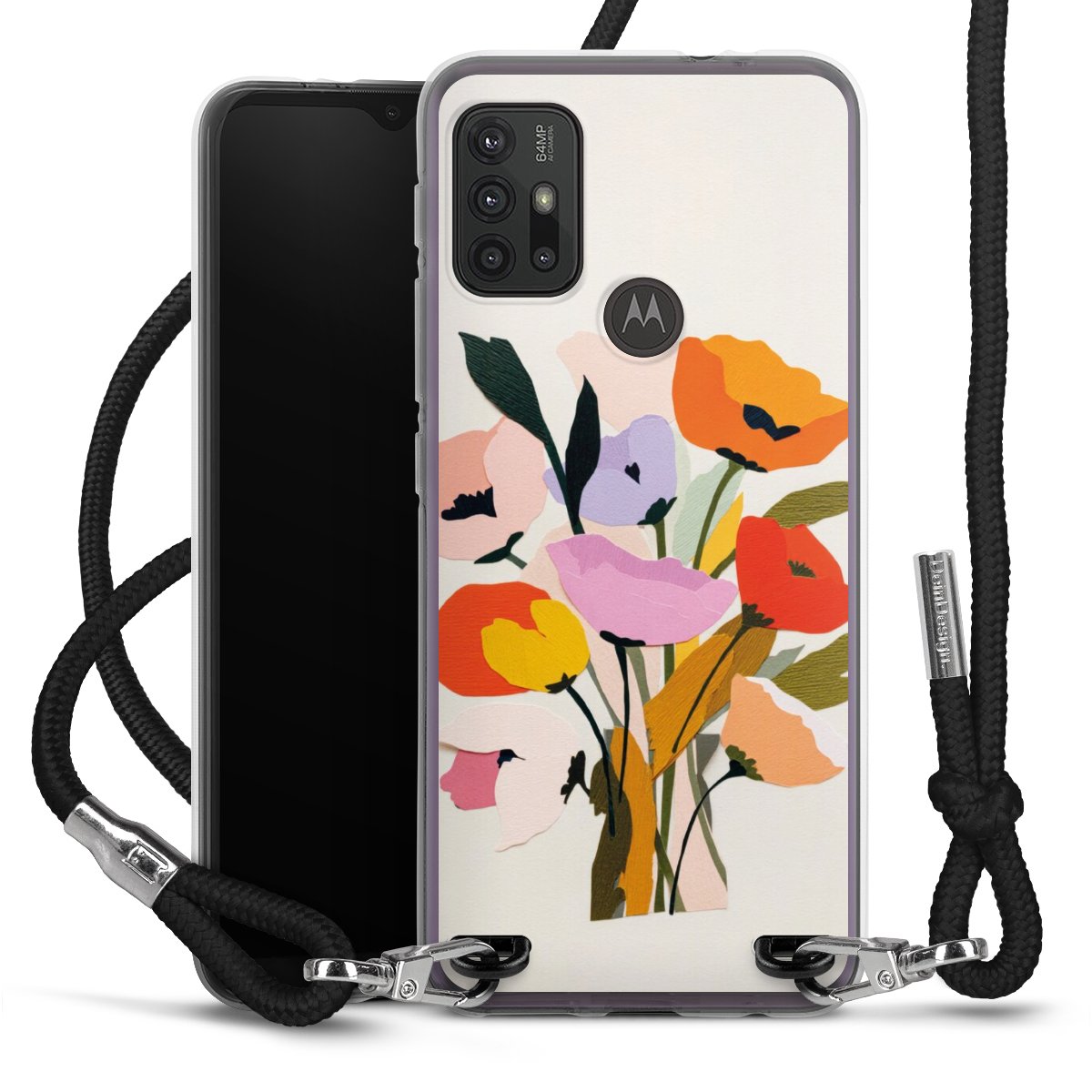 Keep your phone handy at all times, thanks to the flexible silicone case with a textile strap.