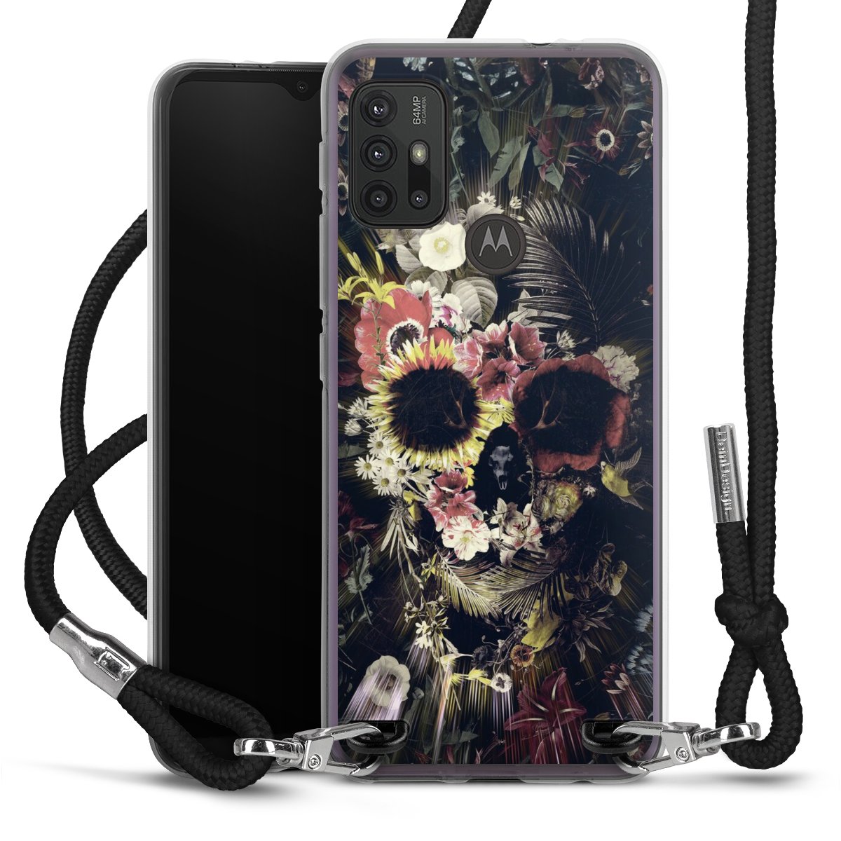 Keep your phone handy at all times, thanks to the flexible silicone case with a textile strap.