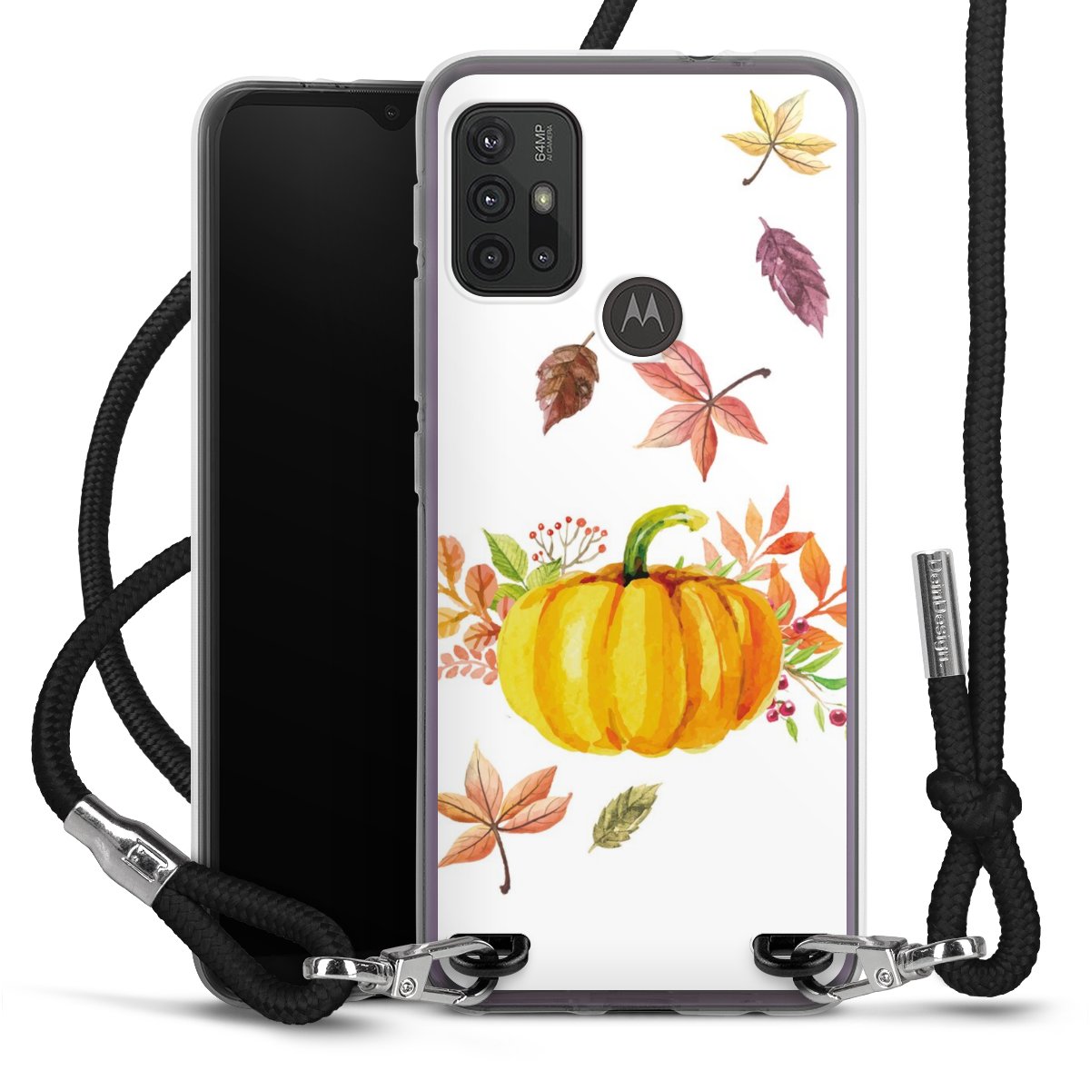 Keep your phone handy at all times, thanks to the flexible silicone case with a textile strap.