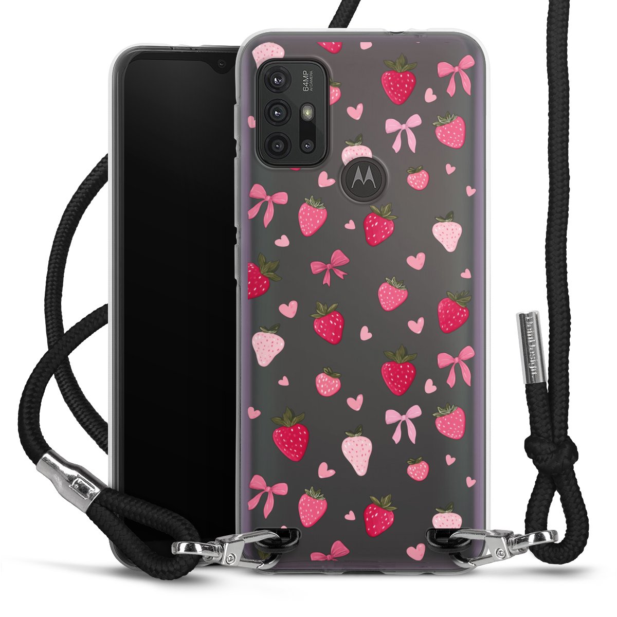 Strawberry Ribbon Pattern Pink Transparent