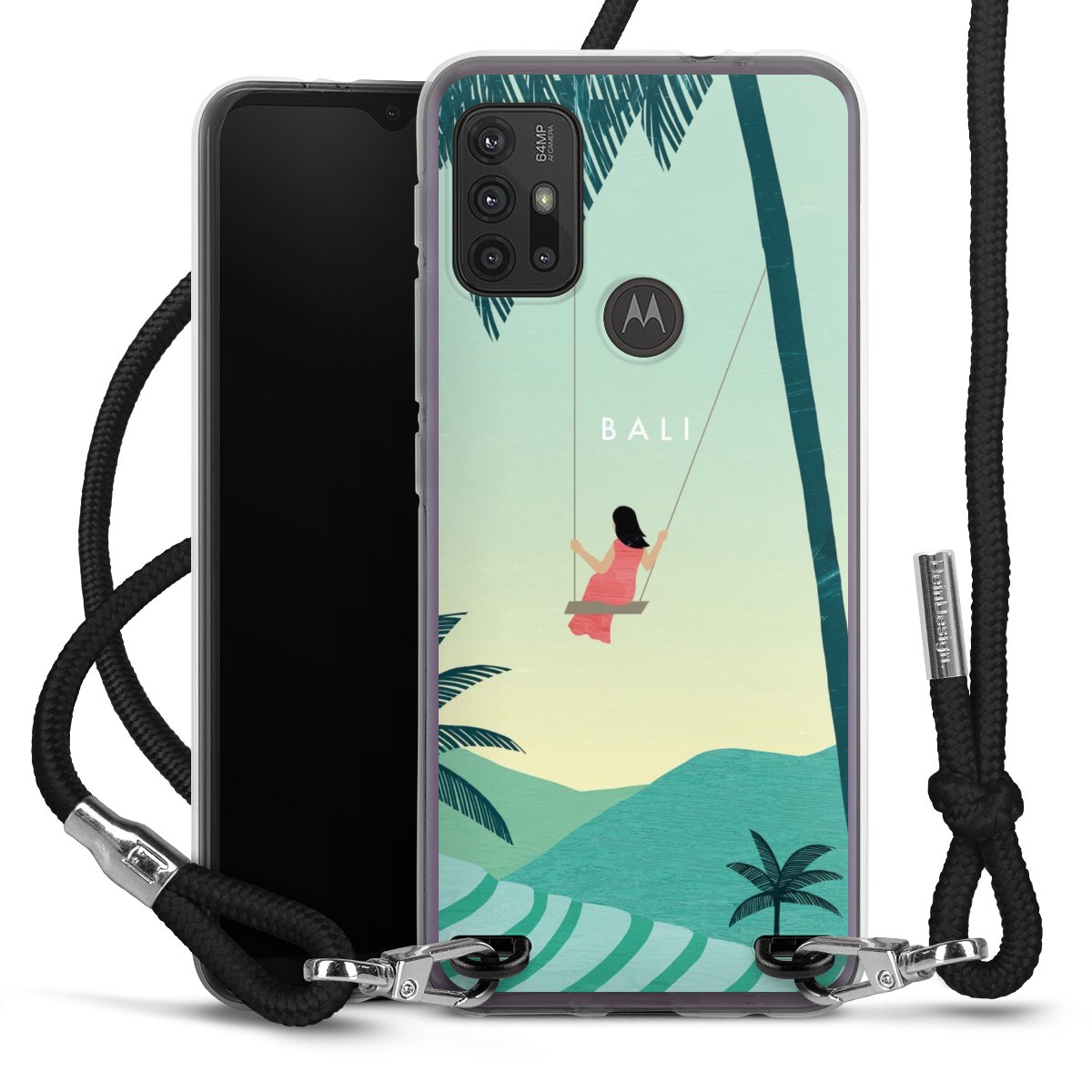 Keep your phone handy at all times, thanks to the flexible silicone case with a textile strap.